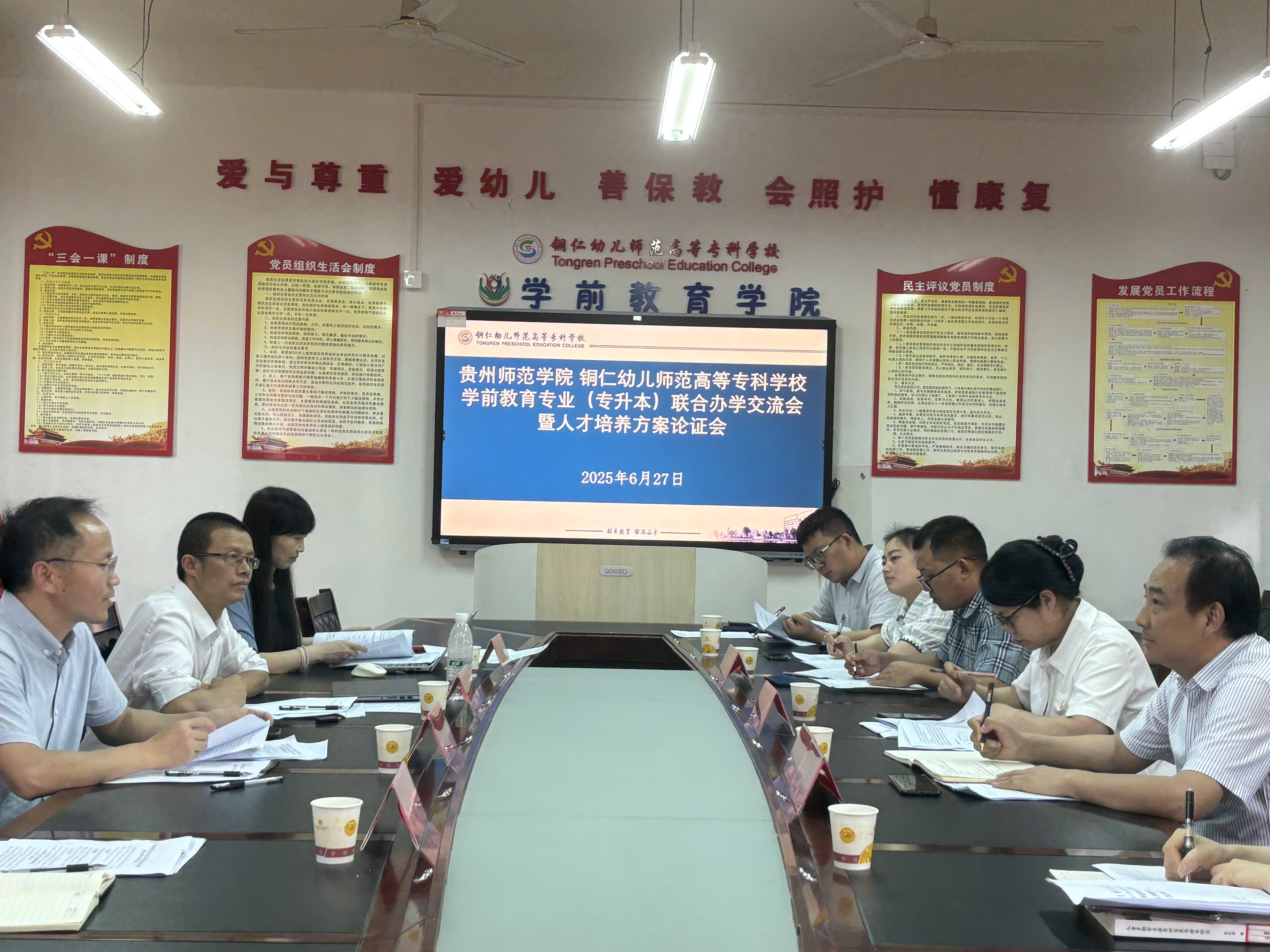 为加强校际合作,进一步深入探讨学前教育专业(专升本)联合办学模式,深化合作机制,提升人才培养质量,2025年6月27日下午,教育学校学院院长宋万琚率领教育科学学院副院长黎平辉、学前教育系系主任娄小韵、学前教育系教师李姿雨一行4人赴铜仁幼儿师范高等专科学校商讨联合办学事宜。