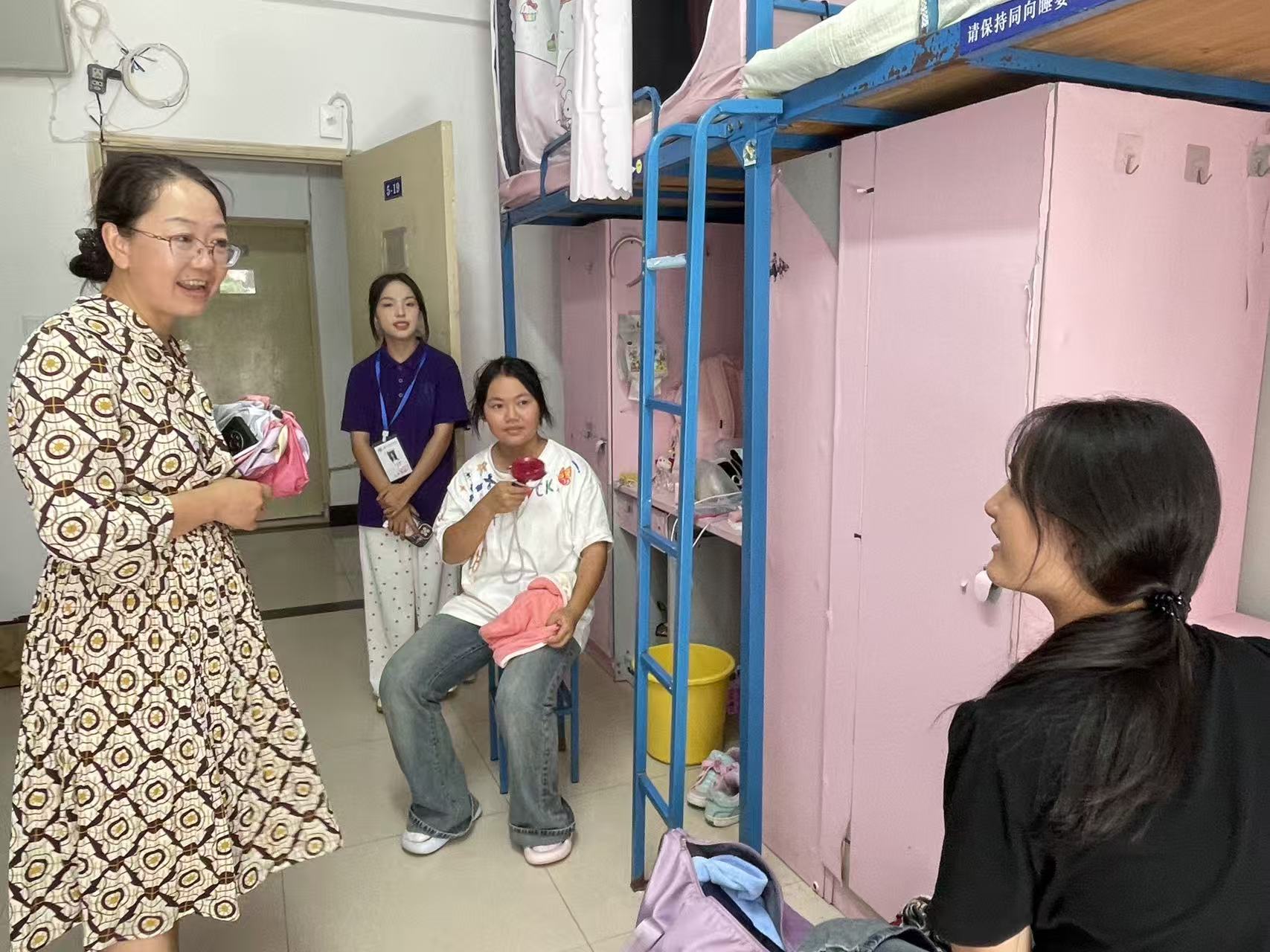 9月4日下午,教育科学学院党委书记肖湘萍、院长宋万琚、党委副书记傅小芳、副院长黎平辉及团委学生会同学走进寝室,看望2025级新生及家长。