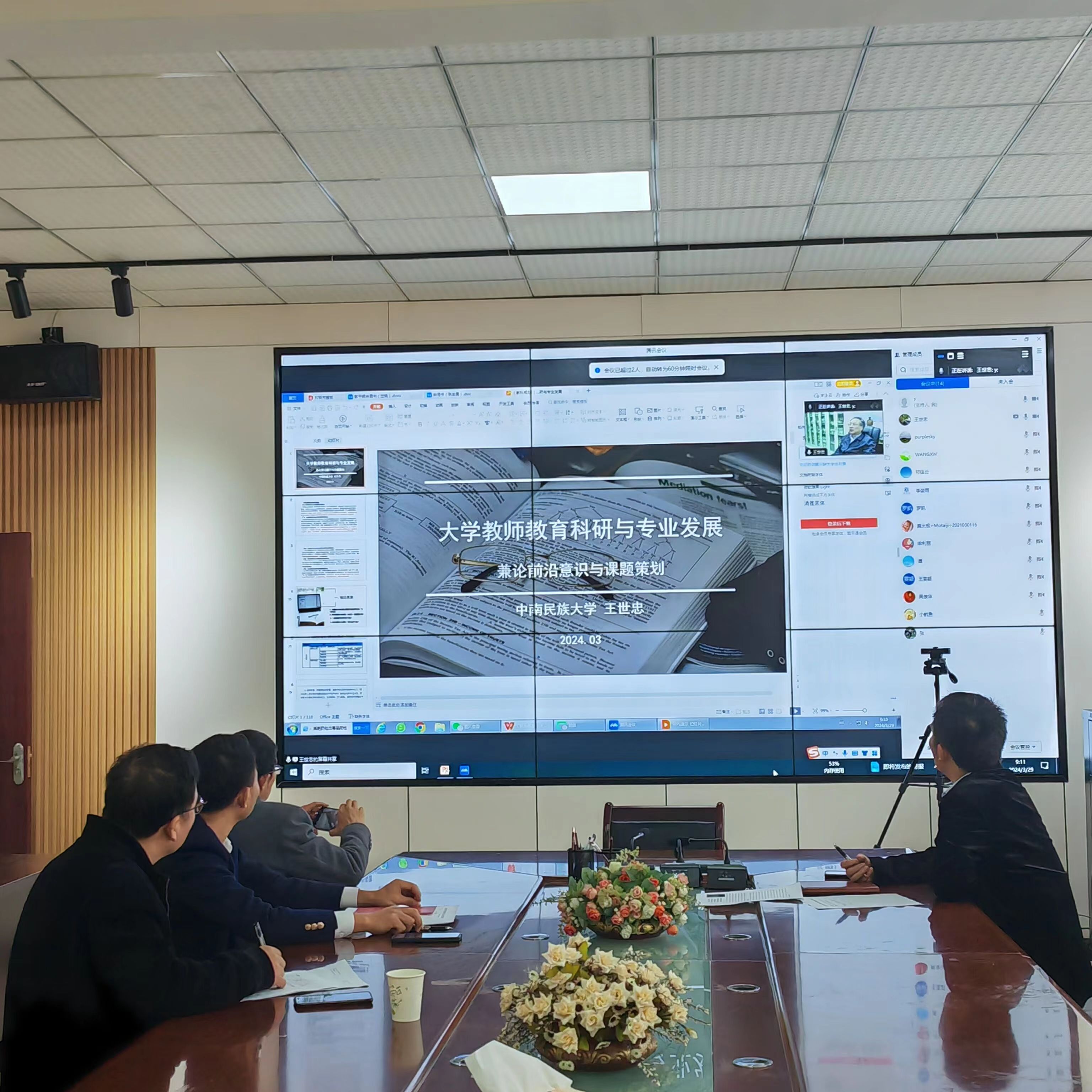 2024329日上午,我院邀请到中南民族大学教育院博士生导师王世忠教授莅临我校线上线下为我校师生做题为《大学教师科学研究与专业发展》的学术讲座学院科研骨干参加了本次讲座,讲座由副院长袁川主持。