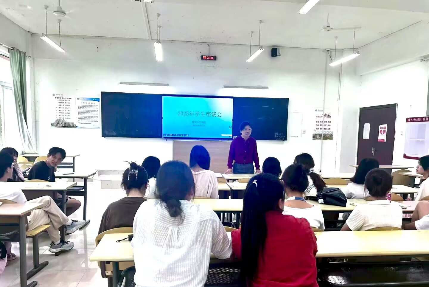 2025年6月18日,教育科学学院党委副书记傅小芳在逸夫楼201教室主持召开学生座谈会。此次会议旨在进一步优化学生管理服务,促进公平公正的评优机制建设。教育科学学院团委学生会全体成员、各班班干部代表及学生代表参加了本次会议。