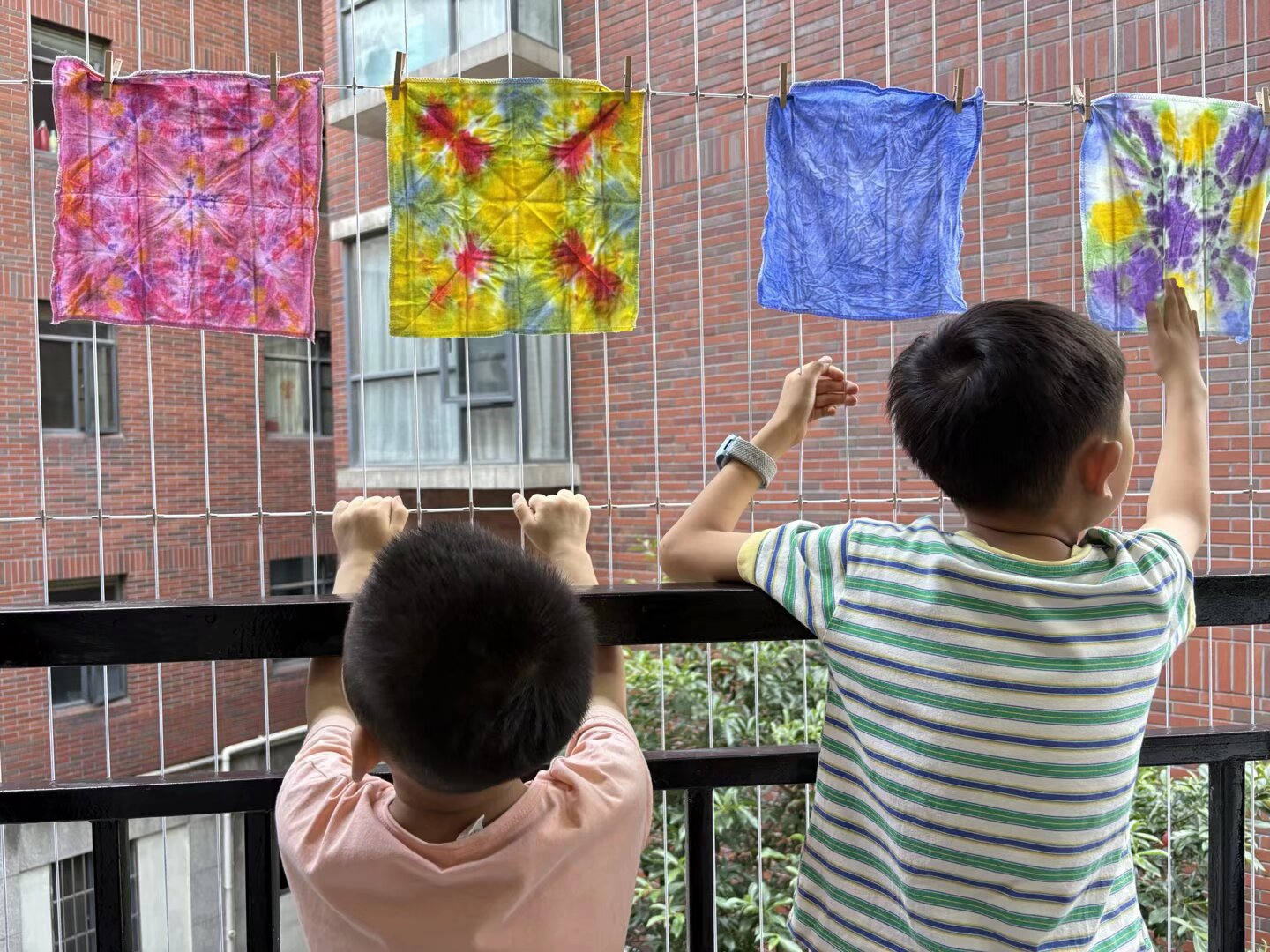 活动伊始,志愿者们为孩子们讲解了扎染的历史渊源和制作原理,通过生动的语言和图片展示,让孩子们对这一传统工艺有了初步认识。随后,志愿者们为孩子们分发了精心准备好的扎染所需的布料、染料、皮筋等工具,并一步步示范扎结、浸染等关键步骤。孩子们在志愿者的耐心指导下,充分发挥想象力,将白布通过折叠、捆绑等方式制作出独特的图案,再浸入靛蓝染料中。过程中,孩子们热情高涨,不断提出创意想法,现场气氛活跃。志愿者们则全程陪伴,确保操作安全,并鼓励孩子们大胆尝试。最后,孩子们将染好的布料展开晾晒,阳光下呈现出深浅不一、花纹各异的作品,每一块布都承载着孩子们的巧思与喜悦。