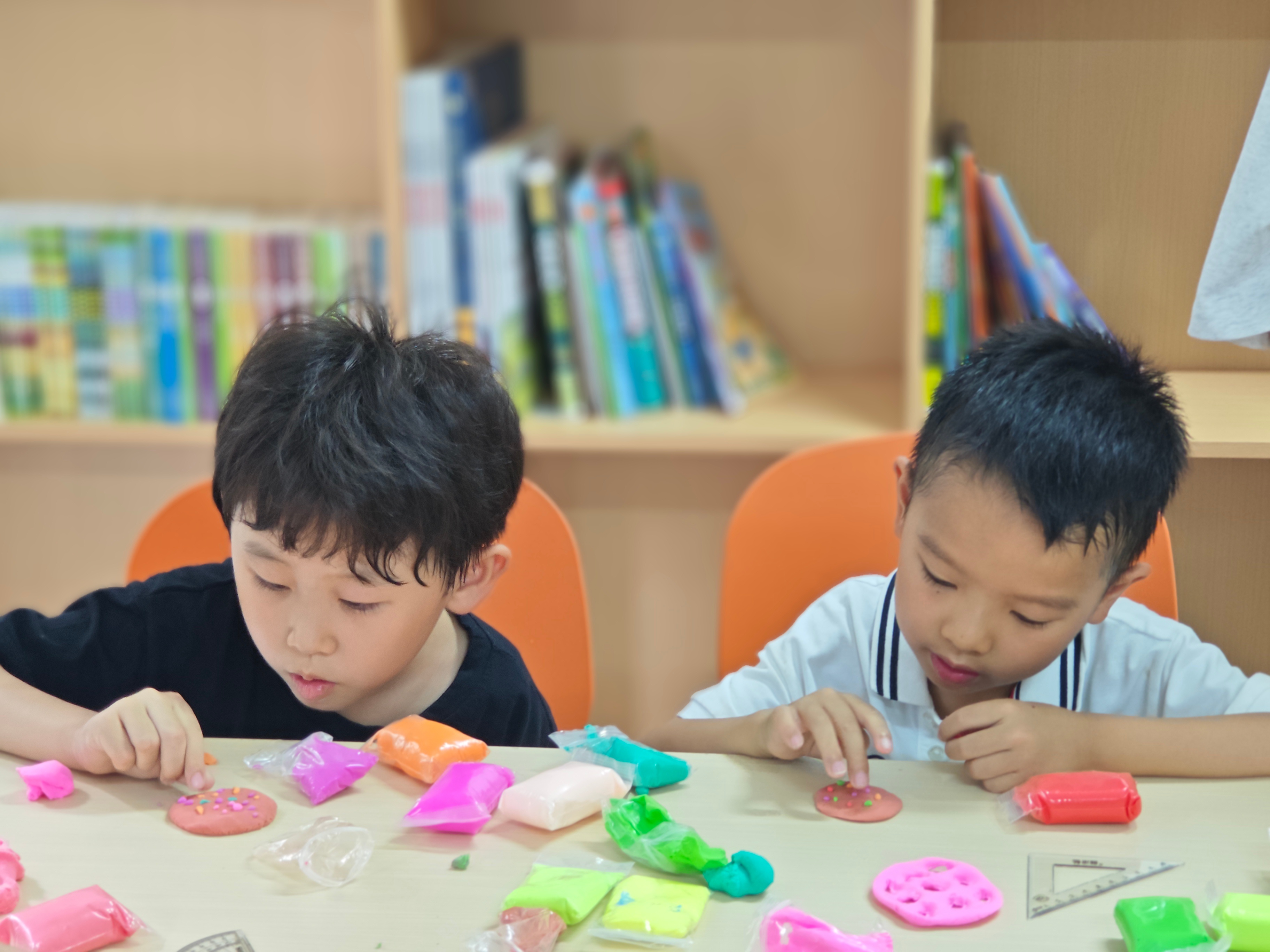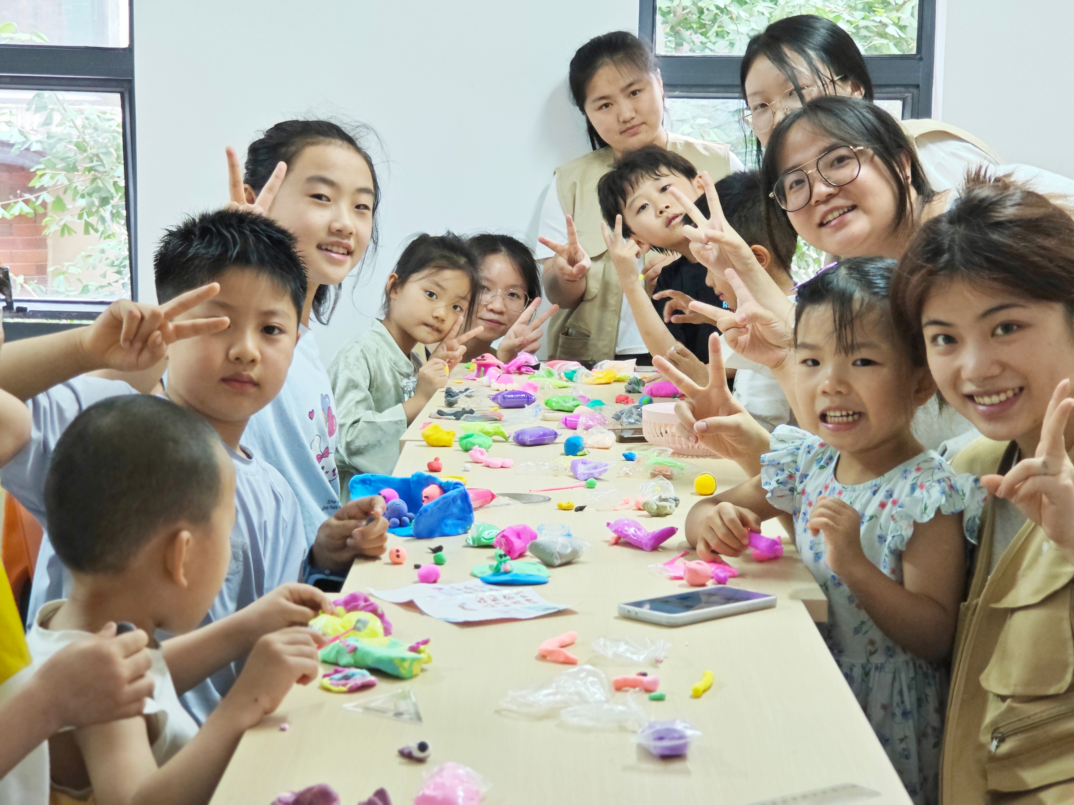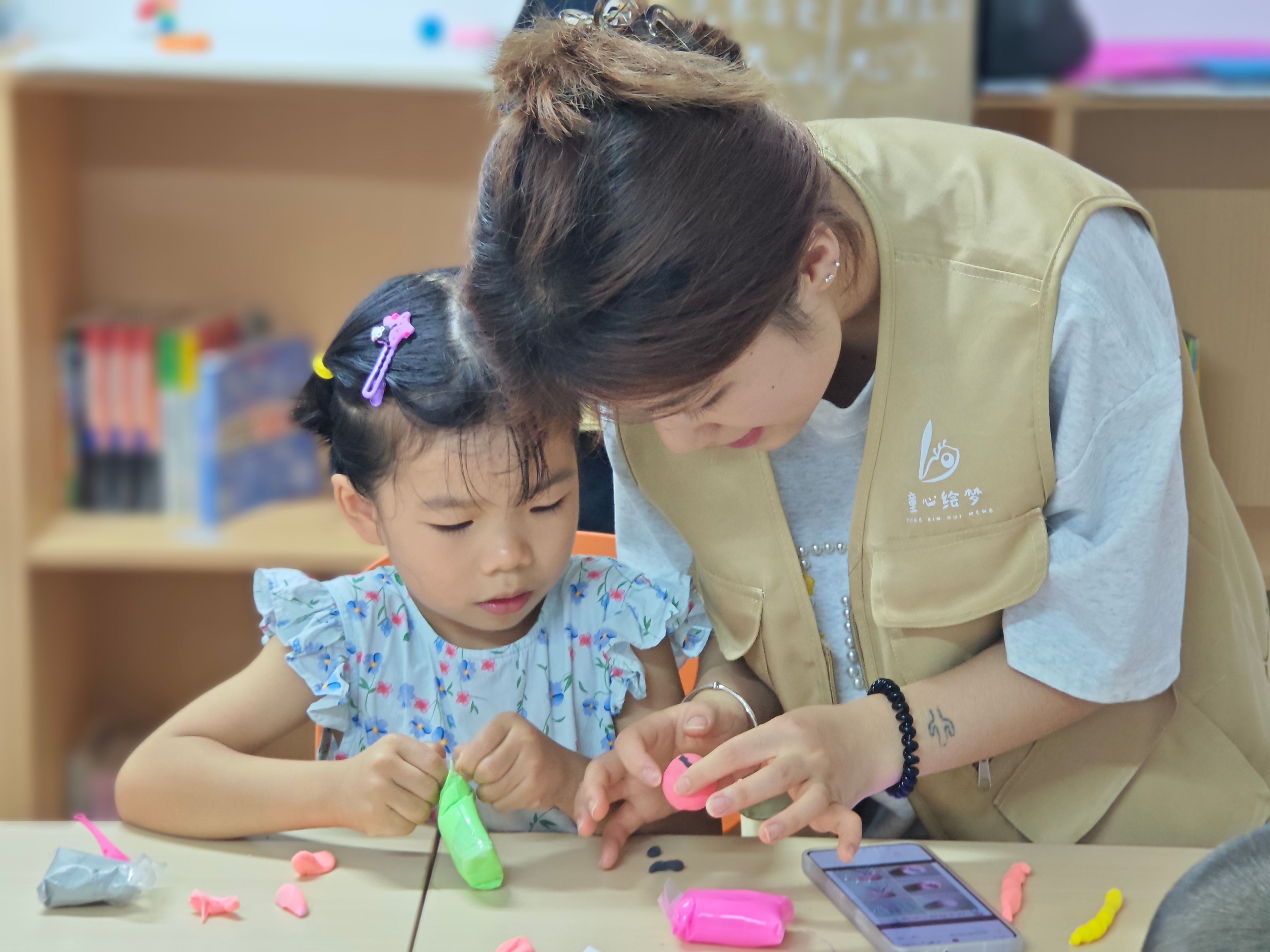 活动前,志愿者已将场地布置妥当,将各色粘土分装在卡通托盘里,像调色盘般鲜艳;五颜六色的扭扭棒按色系排列,剪刀、垫板等工具一一备好。“今天我们要当小小艺术家,先做粘土创作,再做鲜花哦!”志愿者话音刚落,孩子们便兴奋地睁大眼睛,小脸上写满期待,有的已悄悄拿起粘土捏了起来。